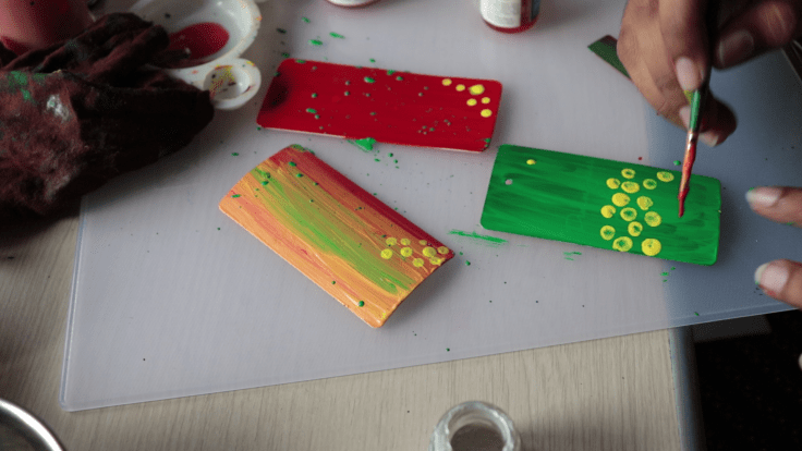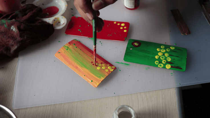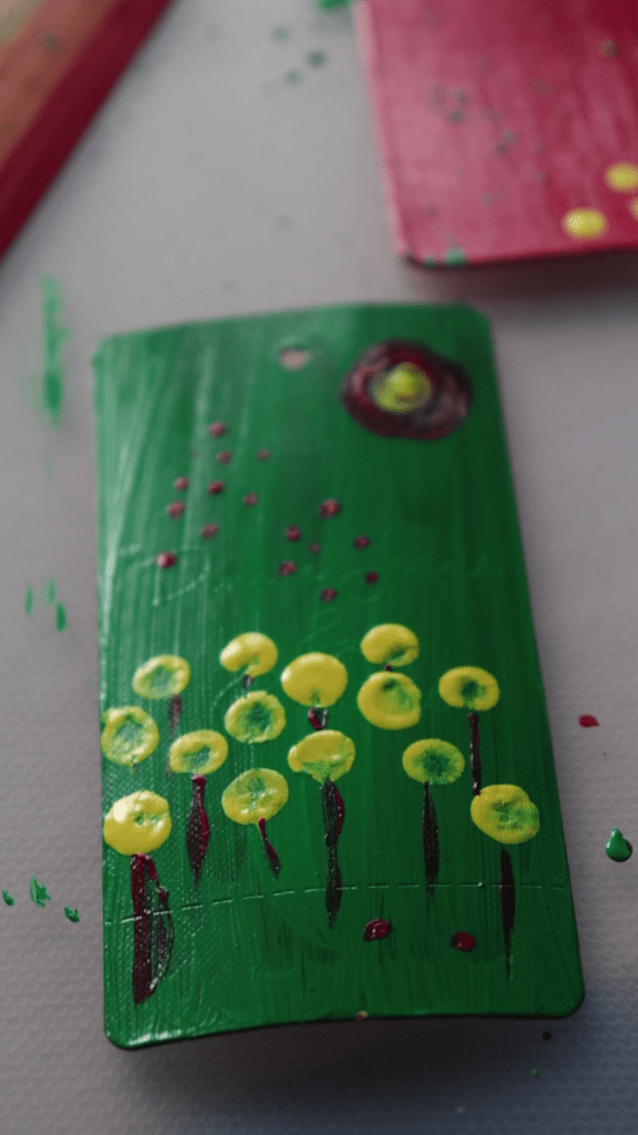 You got options here, three at the least. One you can wrap it up with color papers or glitter tapes or gift wraps. Two you can paste a blank of same size over it and design you mind content. Third you can paint on it directly.\