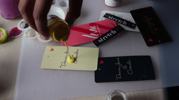 You can either take a thick paper or cardboard of your choice and cut it down the size you want. Or you can use the price tag cards that you get with cloths and use them.